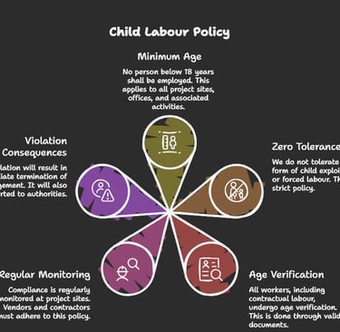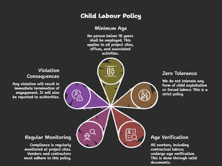 RVM Projects is committed to ethical business practices and full compliance with Indian labour laws, including the Child Labour (Prohibition and Regulation) Act, 1986 (as amended) and the Juvenile Justice (Care and Protection of Children) Act, 2015.