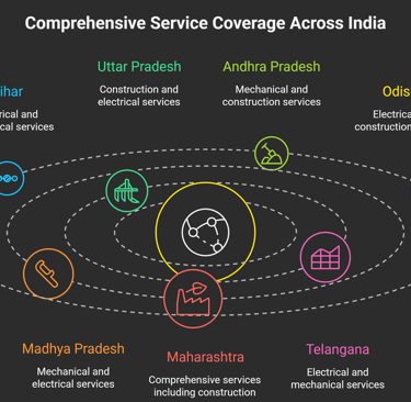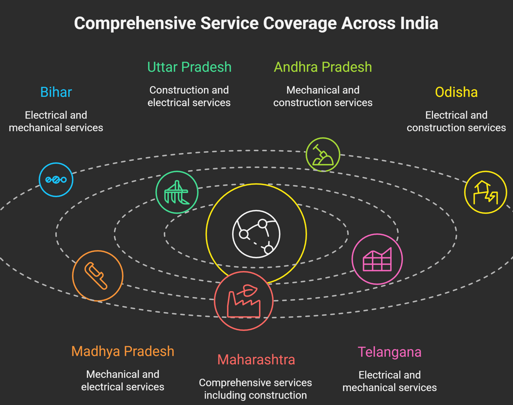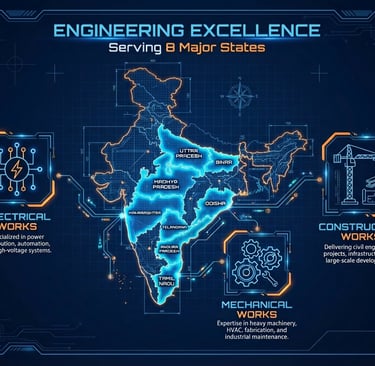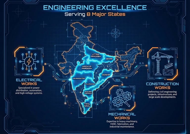 We handle electrical, mechanical, and construction projects across UP, Andhra, Telangana, and Bihar.