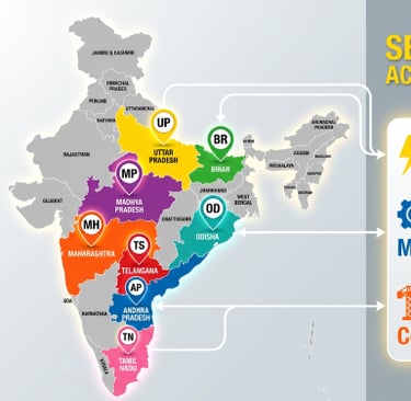 Our projects span across India, including Uttar Pradesh, Andhra Pradesh, Telangana, and Bihar, delivering quality electrical, mechanical, and construction services tailored to each region's needs.
